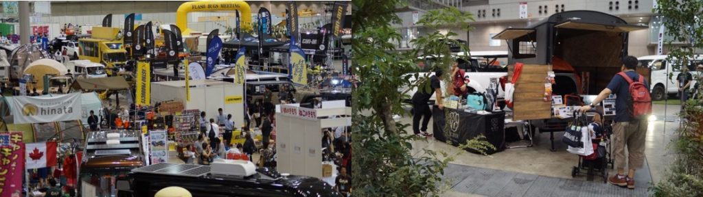 キャンピングカー・バンライフ・車中泊車の展示・販売、メーカー情報コーナー、アウトドア用品の展示・販売、レジャー施設情報コーナー、各種物販他