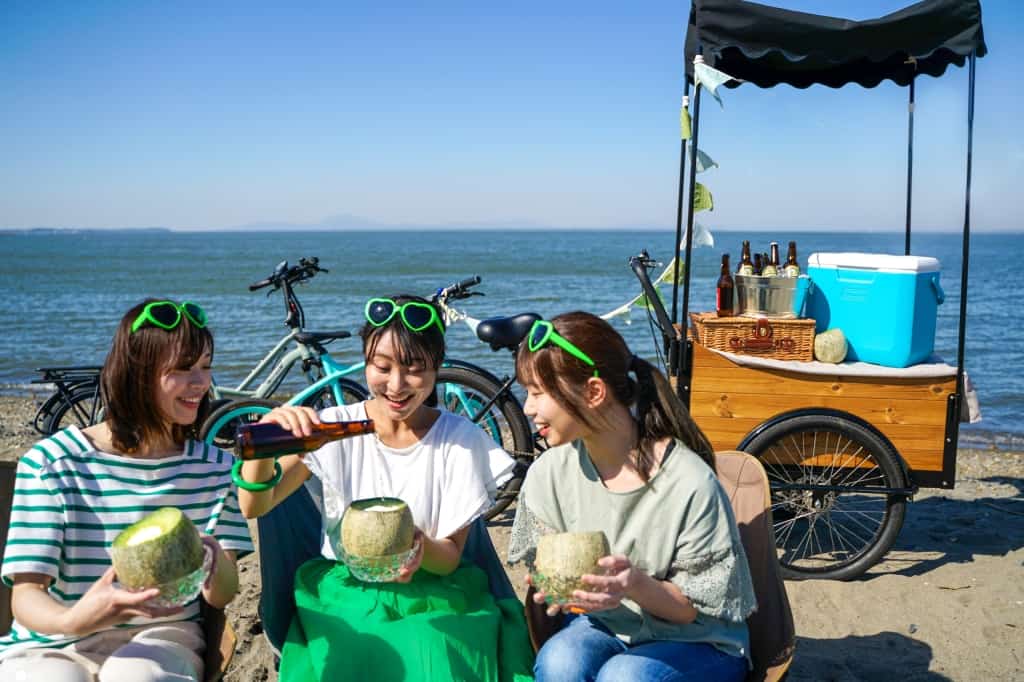 霞ヶ浦の風を感じながら思う存分ビールを楽しんだら、カーゴバイクやレンタサイクルは霞ヶ浦湖畔に置いたままでOK!飲酒運転をすることがないようにサポートします。