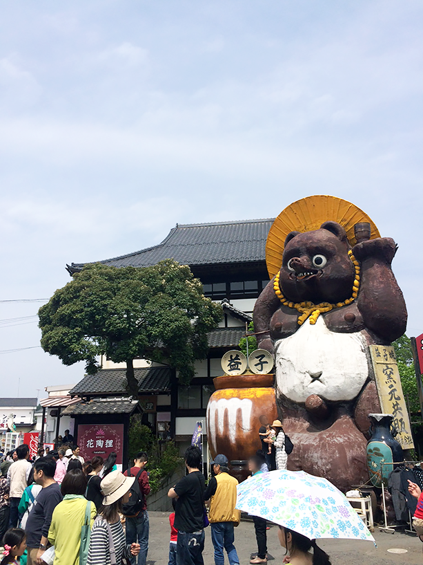 - でかい!益子焼窯元共販センター入り口のたぬきです。
