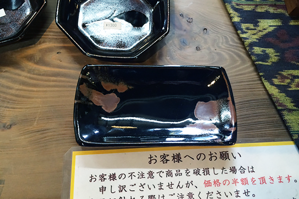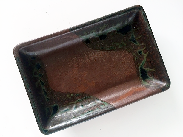 - 益子焼らしい黒釉と柿釉の刺身皿です。